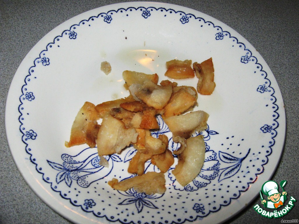 Вынимаем со сковородки шкварки - они в плове не нужны.