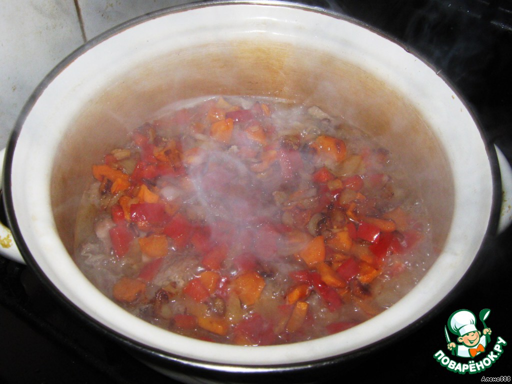 Доливаем немного воды, чтобы покрыть содержимое кастрюли.