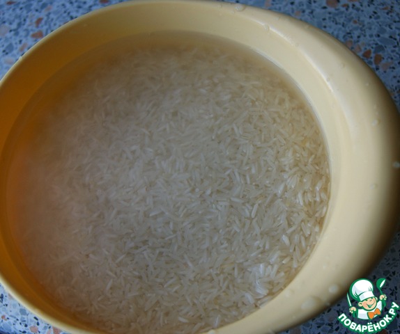 Хорошо промываем рис и оставляем в чашке с водой на 15мин.