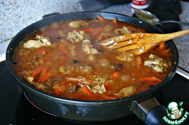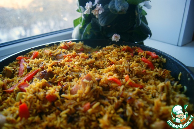 | Рецептом поделился сосед-таджик по даче. У себя на Родине они традиционно готовят плов в казане, конечно же, но и дома можно сделать не менее вкусное блюдо. Курица - мясо диетическое и идеально сочетается с рисом и специями, так что делаю плов всегда с курицей. Это уже стало моей традицией. |