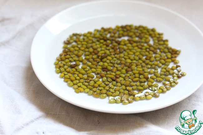 Вечером маш промыть, залить водой и оставить до утра. Замачивать рекомендуется в плоском блюде, чтобы маш был равномерным слоем. Не набухшие зерна, в последствии, выбросить.
