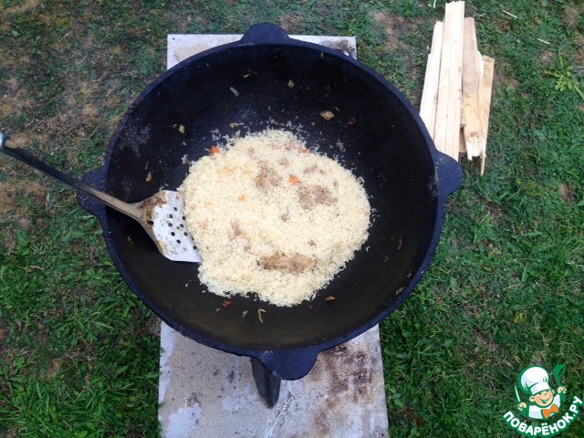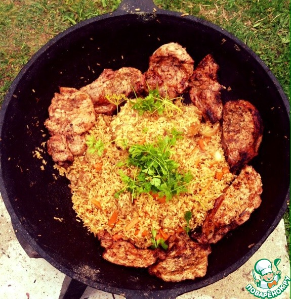| Блюдо из баранины с добавлением русских деревенских трав, совсем не традиционных для плова. |