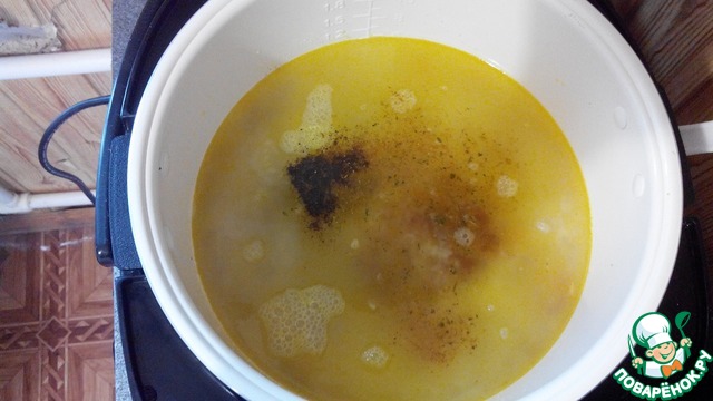 Рис промываем, засыпаем в мультиварку, заливаем водой (у меня горячая кипяченая), добавляем любимые специи