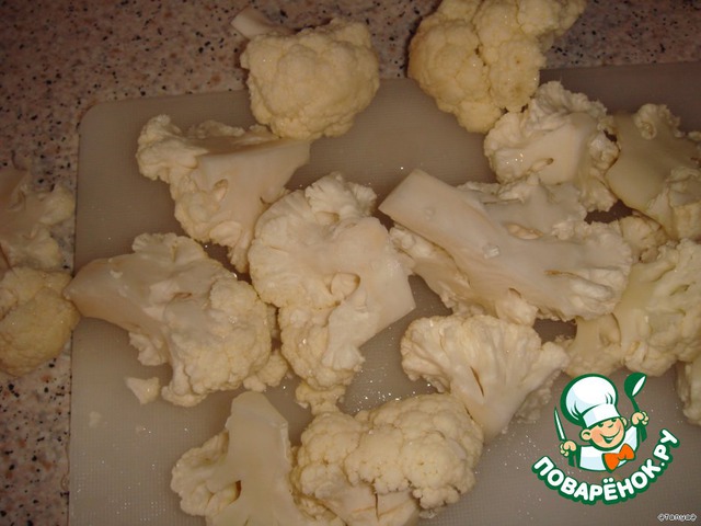 Цветную капусту. Всё посолить поперчить по вкусу.