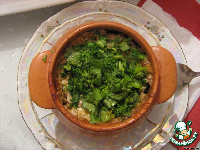 Зелень можно подать по разному. Отдельно или нарезать уже в горшочек.