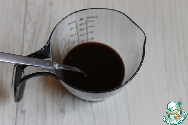 Смешиваeм соевый соус с крахмалом, сахаром и перцем душистым.