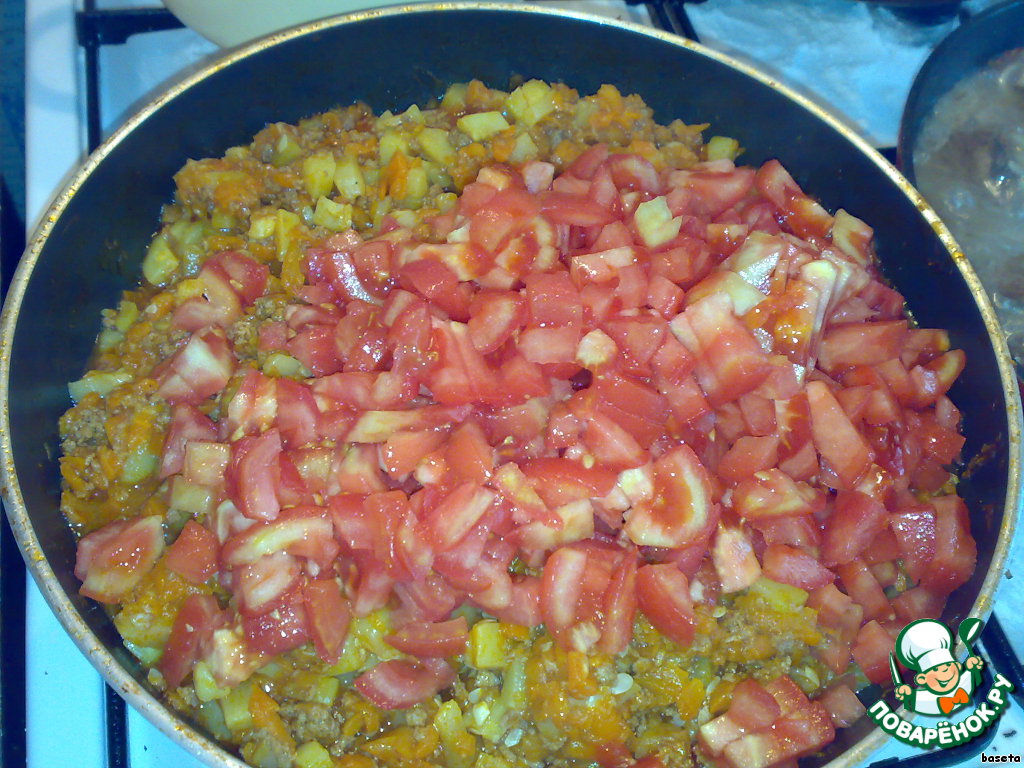 Когда морковка станет мягкой, то можно добавить томатной пасты.