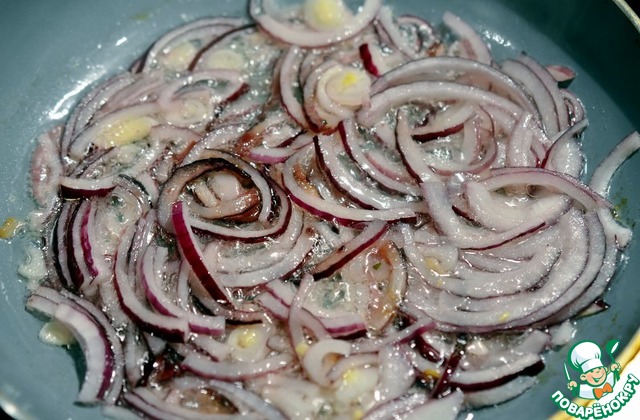 Обжарить лук на оливковом масле до прозрачного состояния.