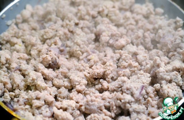 Добавить фарш и обжаривать всё, помешивая, ещё около 10 минут.