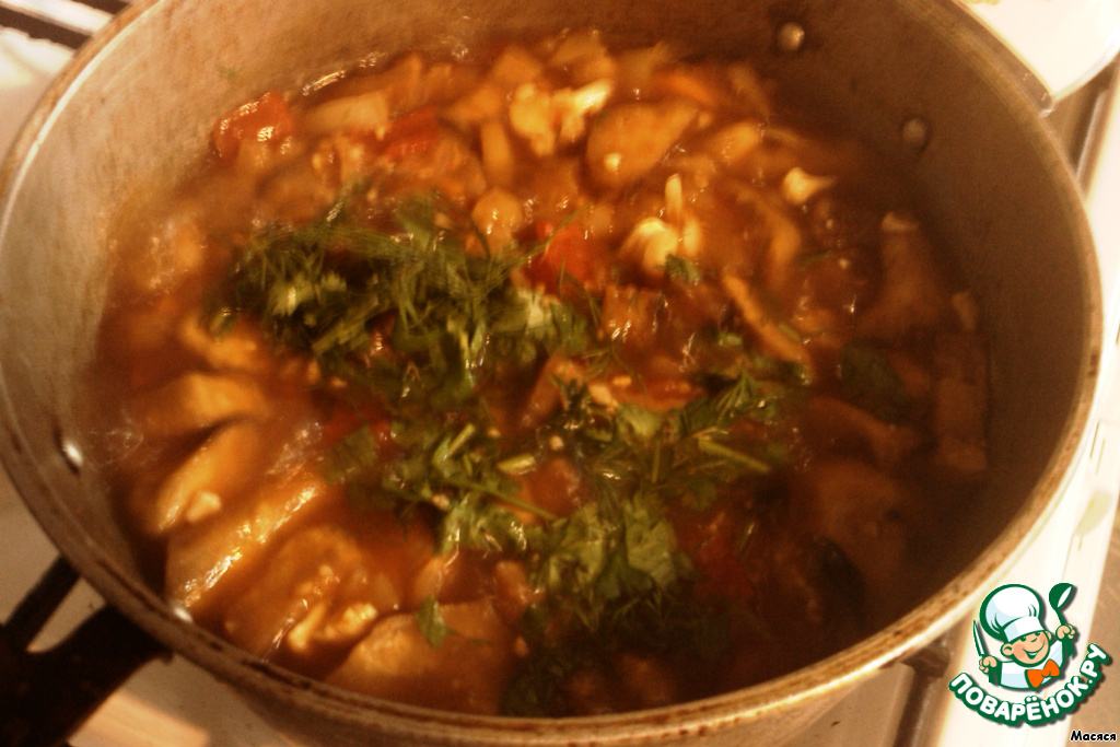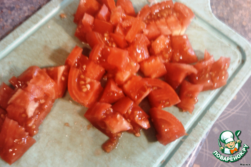 Баклажаны режем крупно, слегка присаливаем и оставляем до появления сока. Сок сливаем.