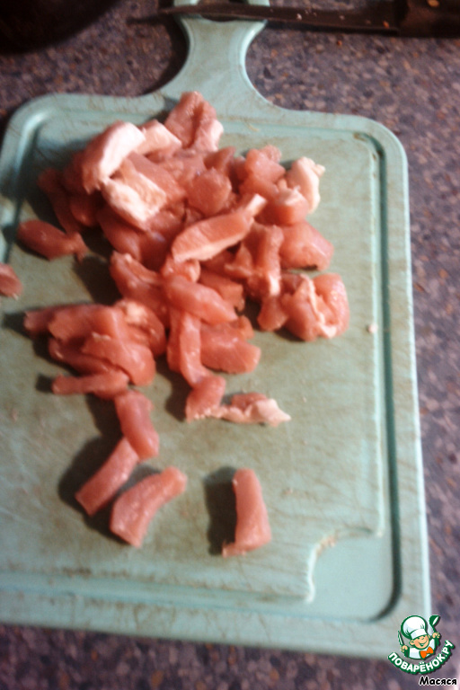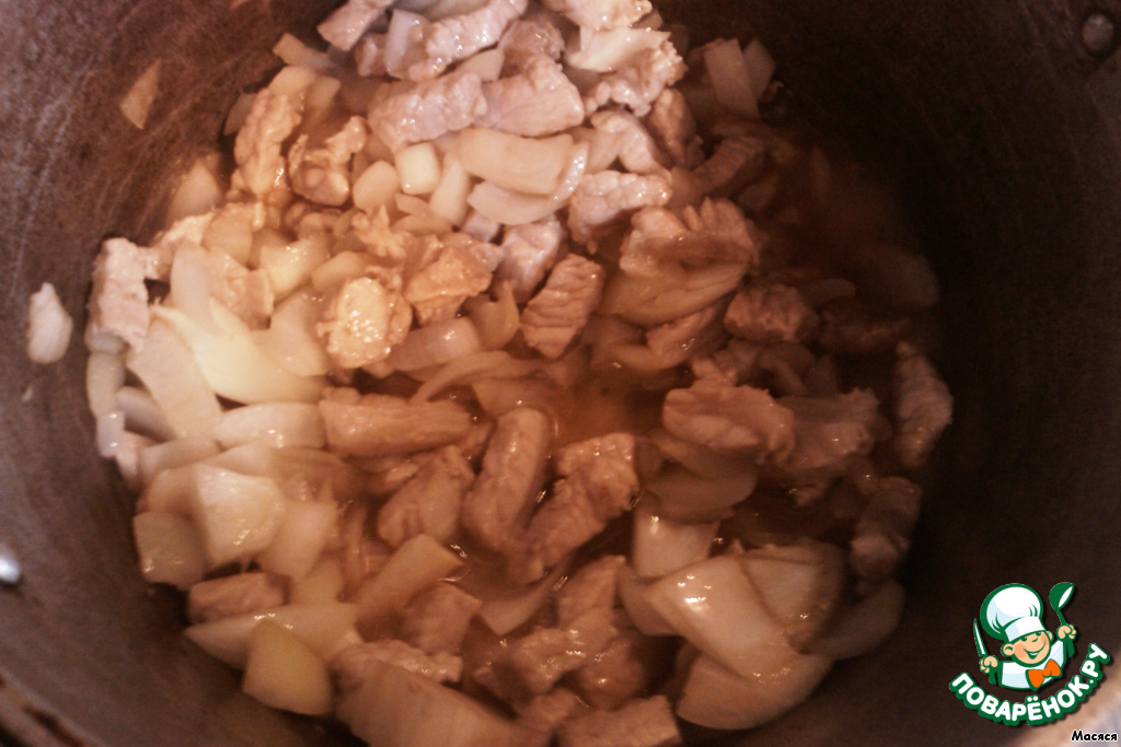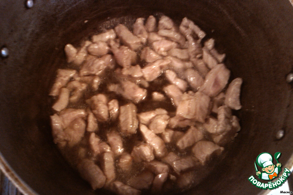 Мясо режем не особо крупно. Можно взять свинины побольше, но у меня не было, пришлось обходиться так