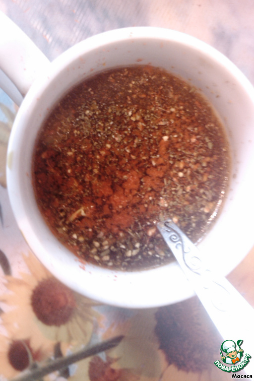 В терияки добавляем специи и размятый чеснок. Мне соус показался густоват, и я добавила воды.