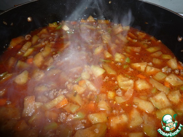 | Еще одно сытное блюдо с баклажанами и мясом. |