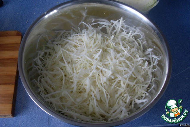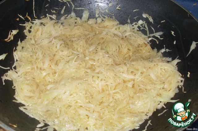 В эту же сковороду доливаем масло и обжариваем капусту минут 5-10.