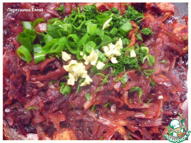 Положить рубленую зелень и давленный чеснок, закрыть крышкой и дать настояться.