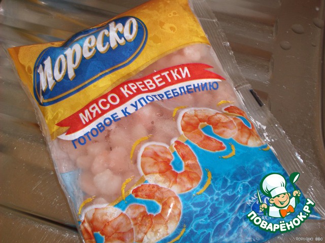 Отварные креветки размораживаем. Я беру такие