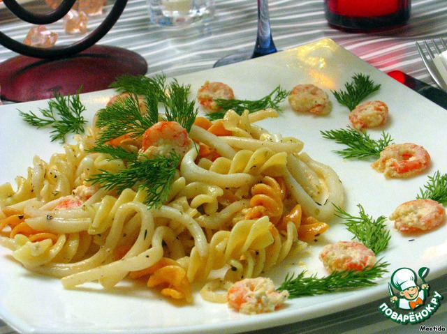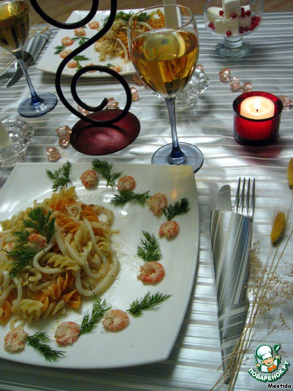 Кальмаро-макароны со сливочно-креветочным соусом "Женская тайна"
