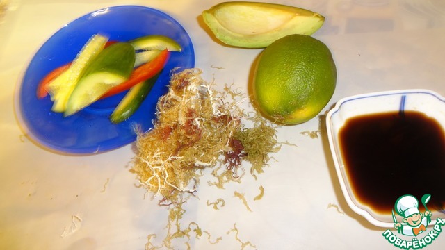 На закуску часто подают водоросли с овощами. Сухие водоросли заливают кипятком и они стоят там до мягкости.