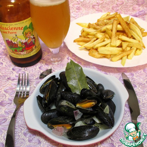 Традиционно это блюдо подается с картофелем фри и бокалом пива. Мидии с не раскрытыми раковинами кушать нельзя!