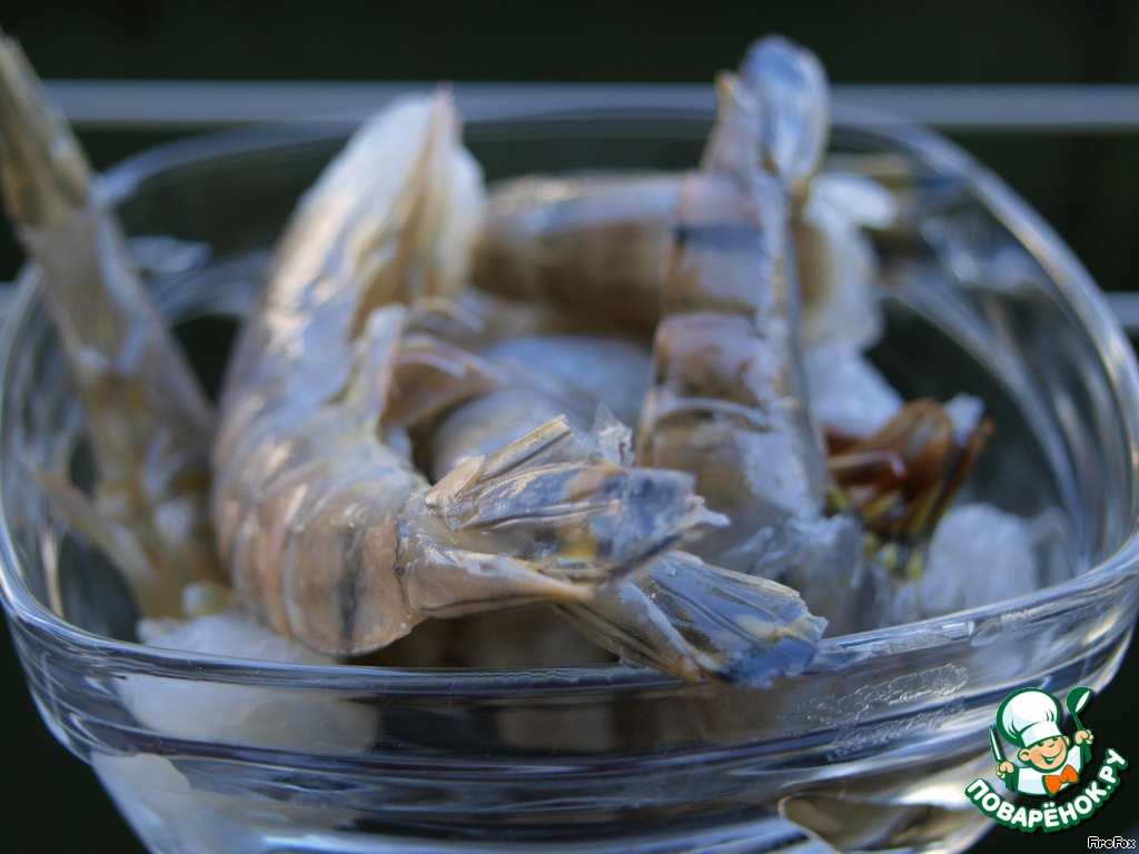 Подготовим наши креветки или, как в моем случае, хвосты, то есть разморозим их.