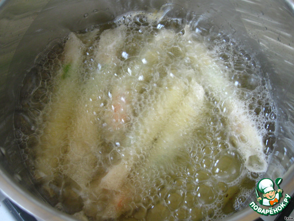 12. Обжарить до золотистого цвета в большом количестве растительного масла (чтоб креветки плавали в нем).