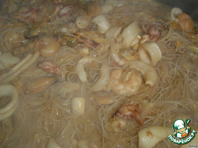 Когда "коктейль" потушится, добавляем рисовую вермишель