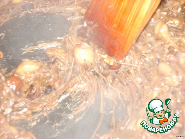 В это время заливаем кипятком рисовую вермишель и даем немного постоять,