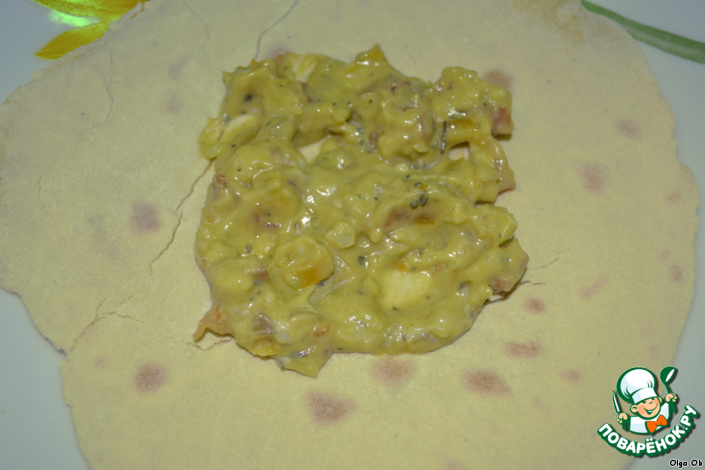 Сверху лучок и сворачиваем в карманчик =) Кушать нужно руками. Приятного аппетита!