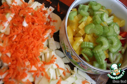 Все овощи кроме чеснока нарезать соломкой, морковь натереть на терке.