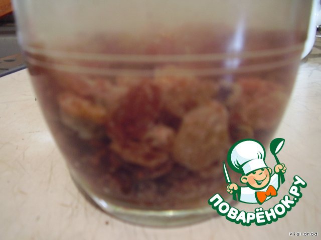 изюм промыть и залить теплой водой, дать постоять, пока он не разбухнет