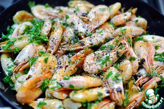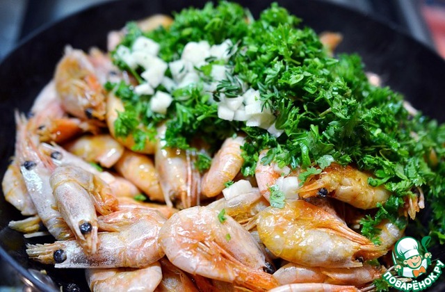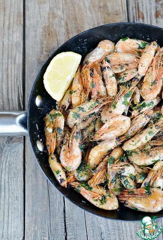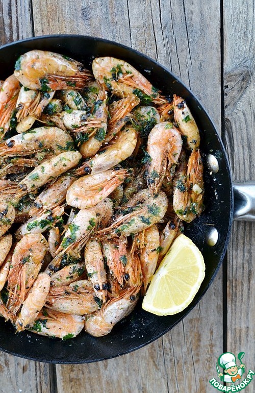Подаём креветки прямо в сковороде. Ну просто очень вкусно!