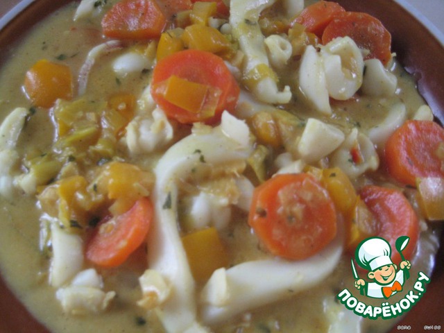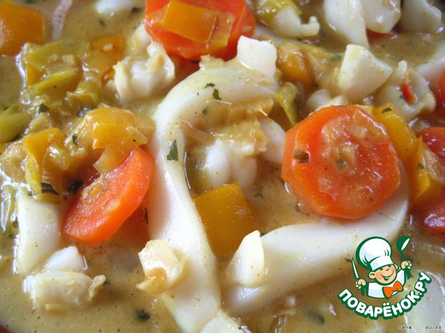 | Очень легкое быстрое и пикантное овощное рагу с кальмарами для тех, кто любит вкусные, и в то же время низкокалорийные блюда. Подойдет так же во время соблюдения поста или диеты, да и просто для тех, кто любит кальмары и карри. Будьте красивы и здоровы! |