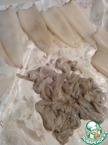 Очистить кальмары от плёнки, оставив при этом (если присутствуют) щупальца