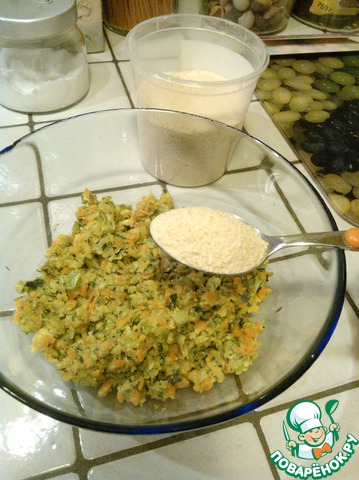 Измельчить в блендере морковь, кабачок и протушить их на растительном масле вместе с зубчиком чеснока до мягкости.