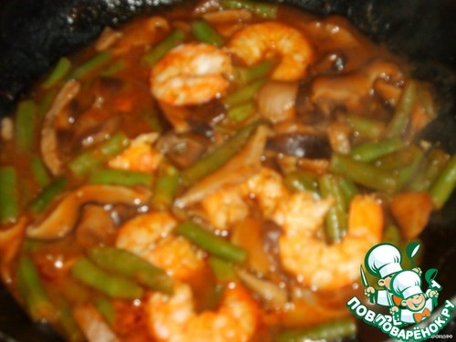 Через минут 5 добавляется стручковая замороженная фасоль.