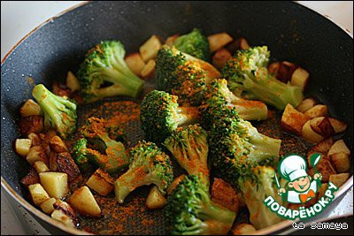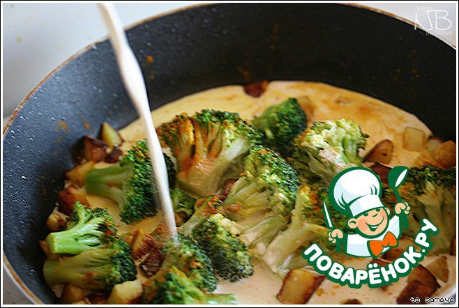 Тигровые креветки с брокколи в сливочном соусе с карри