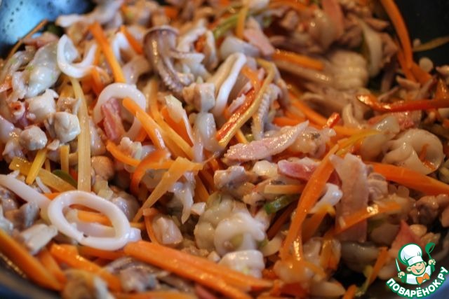 Yakisoba с курицей и морепродуктами