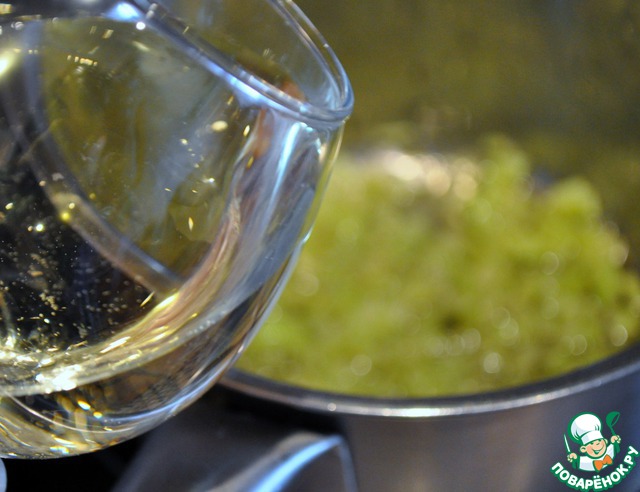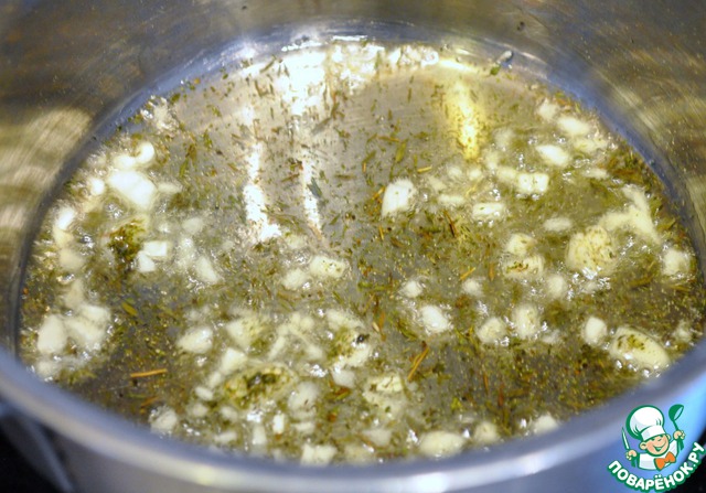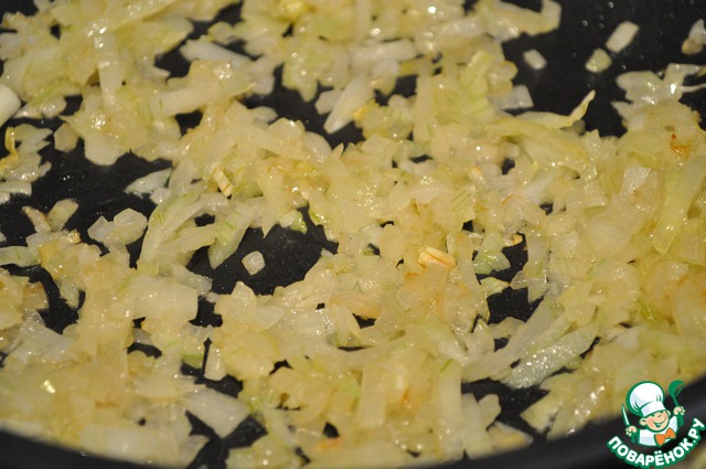 В сотейнике с разогретым оливковым маслом, тимьяном и чесноком, обжарить сельдерей.
