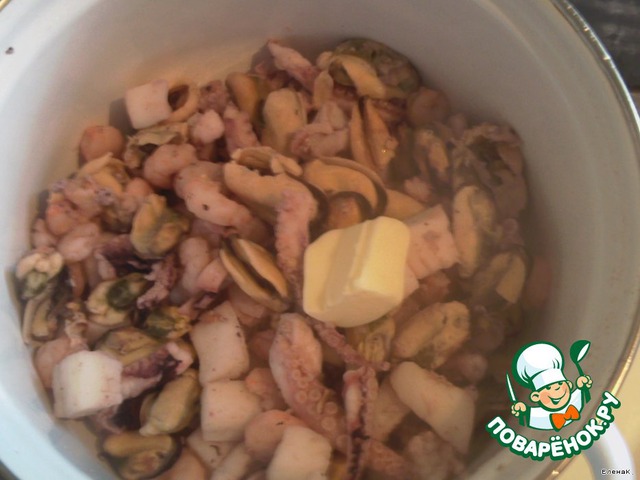 Воду сливаем, кладем к гадам кусочек сливочного масла.