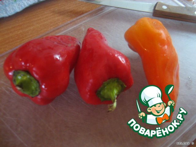 Т. к. морепродукты уже готовы (они были отварены и заморожены), обжариваем перец с луком.