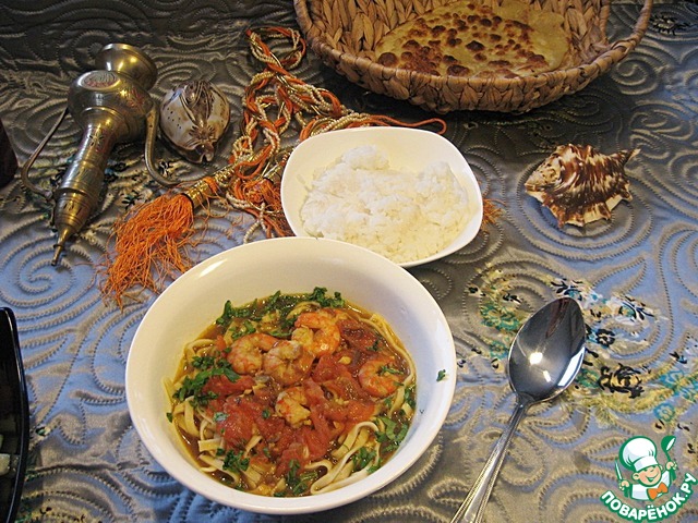 | Лакса с креветками - это малазийская лапша. Как всё азиатское, она отличается остротой, непривычной для нас, поэтому я в рецепте написала то, сколько нужно всего добавлять. А вы уж все острые ингредиенты добавляйте понемногу на свой вкус, тогда получите от этого супа настоящее удовольствие. |