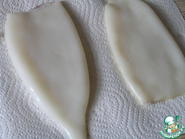 Займемся кальмарами. Тушки хорошо промыть, обсушить.