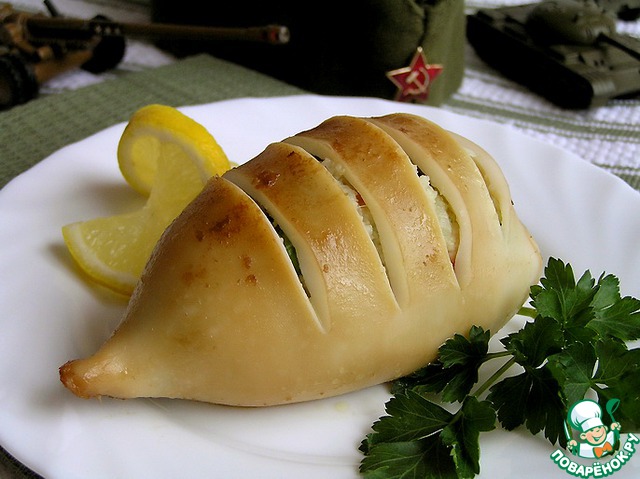 | Предлагаю Вам попробовать фаршированных кальмаров - здесь воедино слились основное блюдо и гарнир! Кальмары будто специально созданы, чтобы их фаршировать. А Ваша фантазия подскажет, чем именно. Это может быть мясной фарш, рыба, овощи или морепродукты. Моя фантазия, благодаря конкурсу "Крупяные маневры", подсказала такой вариант. Попробуйте, получилось очень вкусно и эффектно, а главное - мужу понравилось! ;) |