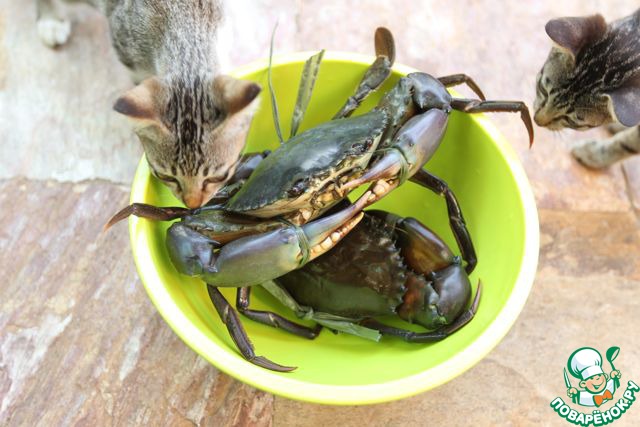 Итак, нам понадобятся крабы, у меня примерно каждый краб по 500 гр. Такого краба достаточно на одну порцию, я готовила для двоих. Можно использовать клешни камчатского краба, что не менее вкусно.
