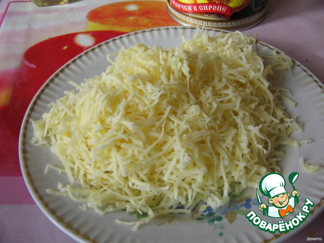 Сыр лучше взять поострее и натереть на мелкой терке.