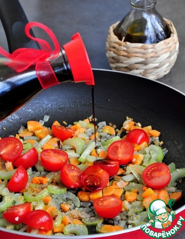 Обжарить овощи на оливковом масле до прозрачности.