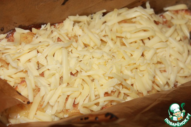 С гратена снять фольгу, посыпать сыром, и отправить опять в духовку на 10 минут