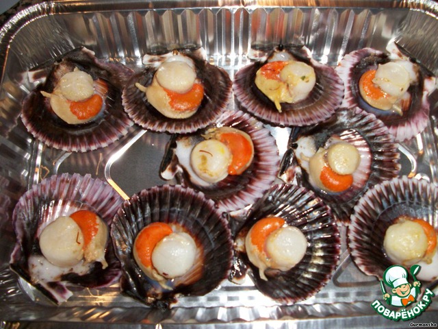 Для начала приготовим морские гребешки. У меня в морозилке всегда имеются, так как муж очень любит. Я готовила на 10 человек в качестве закуски - по одному гребешку на человека, так как кроме этого было еще много закусок.