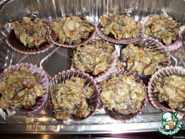 Ракушки тщательно вымоем, высушим и выложим в форму для запекания.