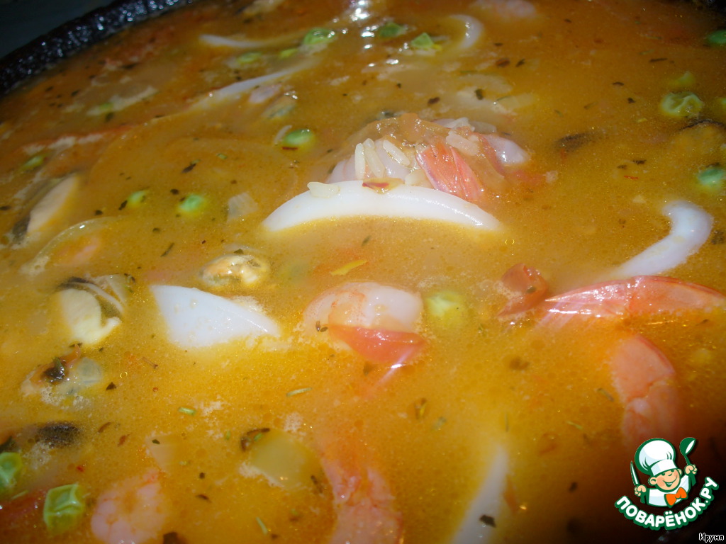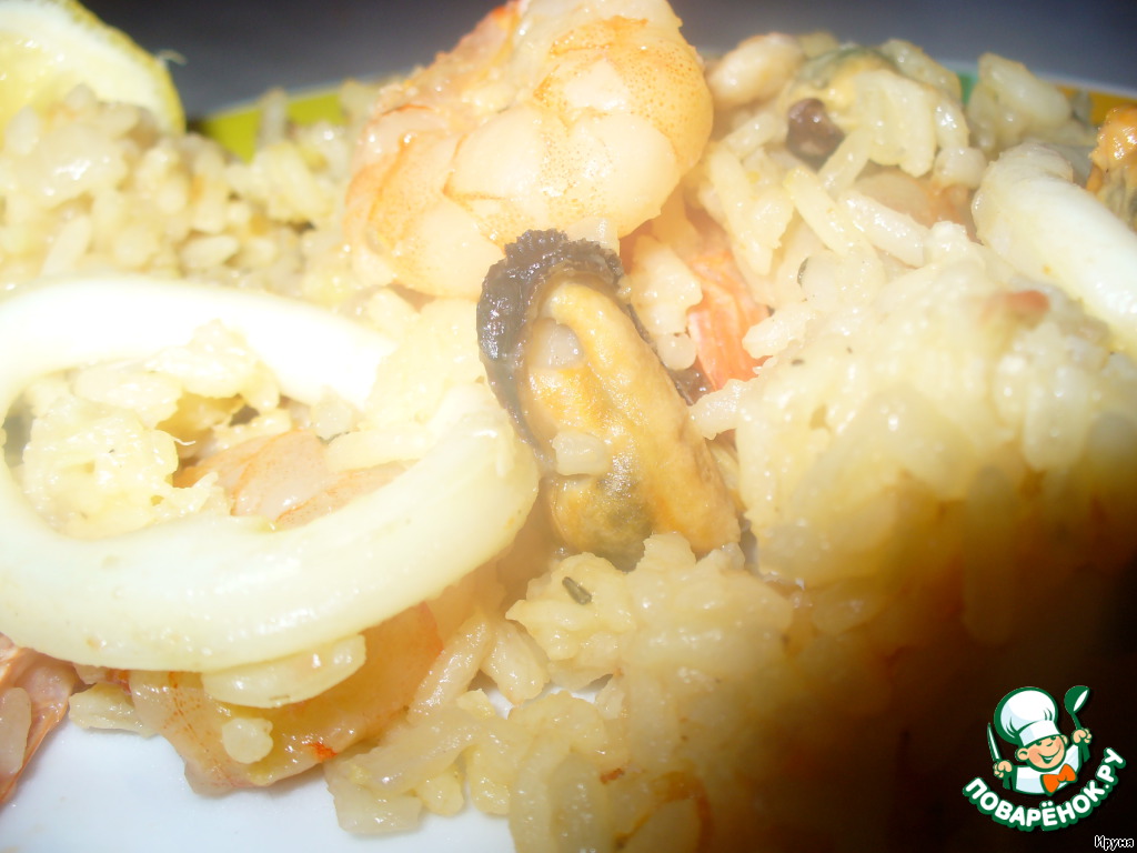 | Недавно случайно наткнулась в интернете на этот рецепт. Мне он показался интересным и был претворен в жизнь с небольшими изменениями. Сказать, что это вкусно - не сказать ничего. Для меня, страстного любителя морепродуктов - это, как минимум, ОЧЕНЬ вкусно! Не буду утверждать, но в аутентичной паэлье, вроде бы, в составе должна присутствовать курица, в этом рецепте ее нет, поэтому это блюдо может быть предложено в качестве постного питания в дни, когда разрешены морепродукты. |